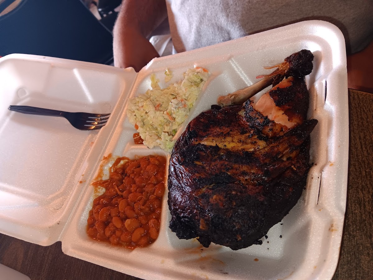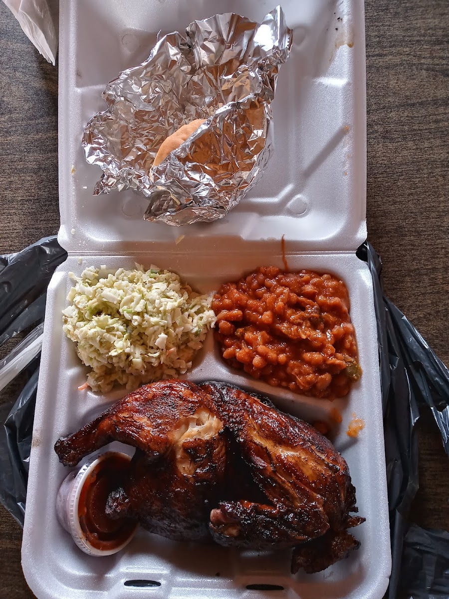 It's Country and it's Good. The 1/2 Smoked Chicken was Fall Off The Bone Good!!! The smoke flavor was delicious. The Baked Beans were real good. The slaw was basic but at least it wasn't full of too much mayo. The building to the left is the dining area. The place doesn't look like much the food is delicious. If I'm in town again, I'll come back and try some brisket.
