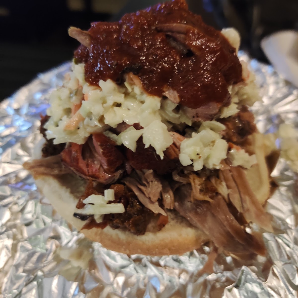 BBQ sandwich with a side of slaw. Might be the best BBQ I've ever had! Love the dill pickle in the slaw, delish.